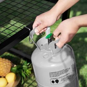 - The middle rack can be height adjusted to allow for a propane tank on the bottom rack