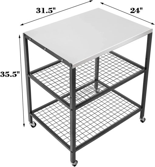 The middle mesh shelf can be adjusted to two levels as needed. This feature can be used as an indoor dining cart or easily rolled outside at any time.