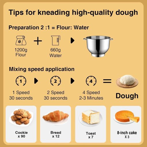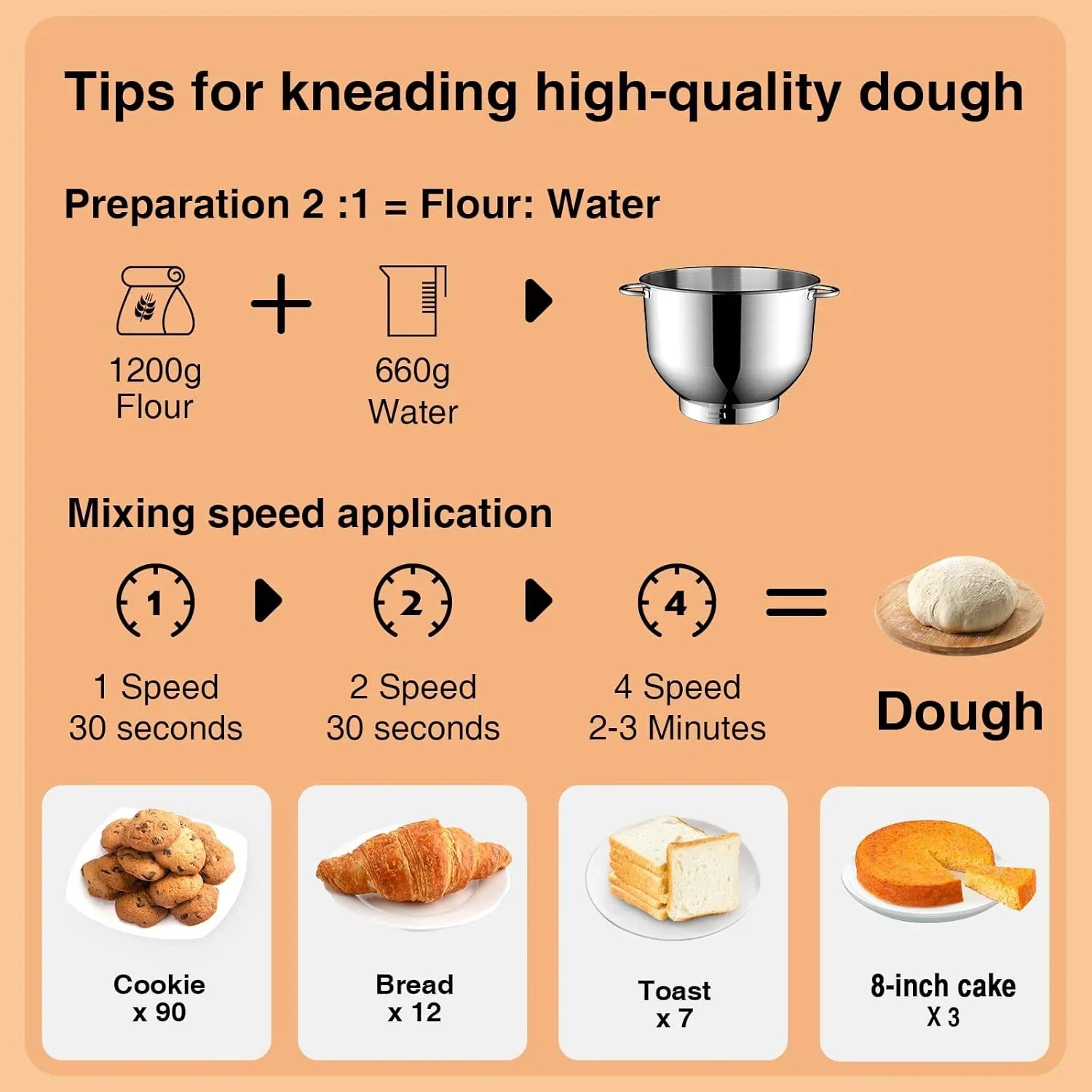 Stand Mixer 6.5 Qt 660W 6-Speed Tilt-Head Food Dough Mixer Kitchen Electric Mixer Stainless Steel